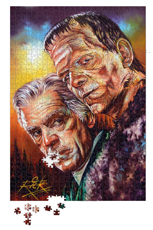 Boris Karloff and the Monster - Frankenstein Horror 1000 Piece Puzzle by Rick Melton